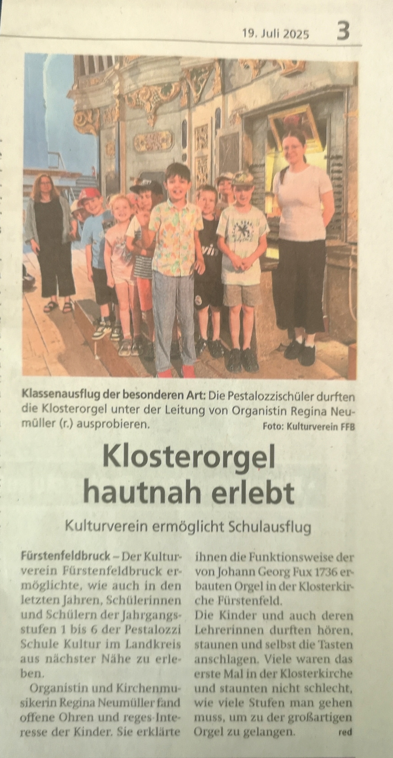 Schüler der Pestalozzischule besuchten die Klosterorgel unter der Leitung von Organistin Regina Neumüller.